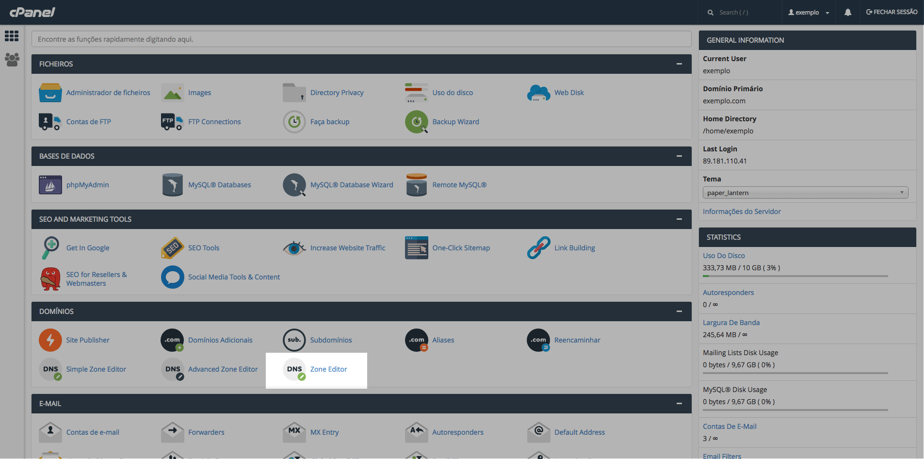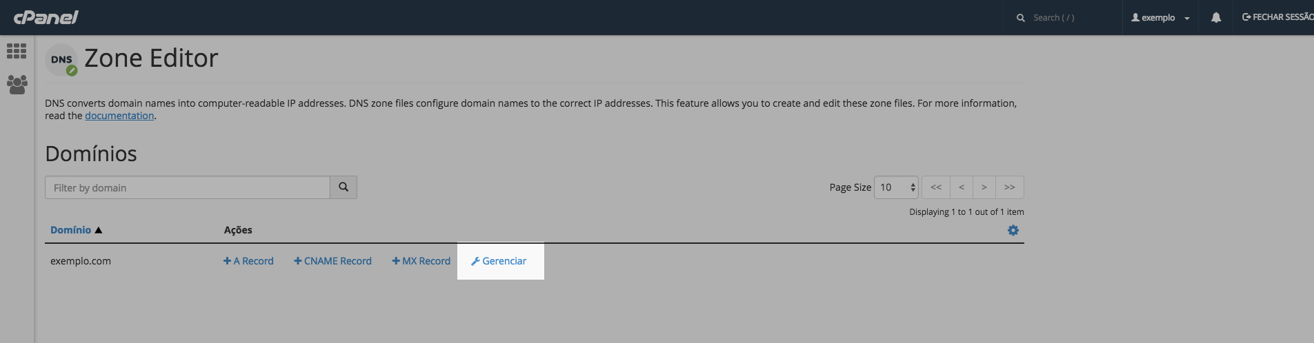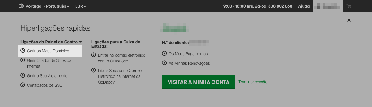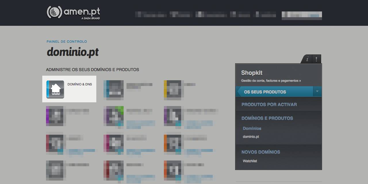 Faz login na área de cliente, seleciona a opção Domínios e escolhe o domínio que pretendes configurar.