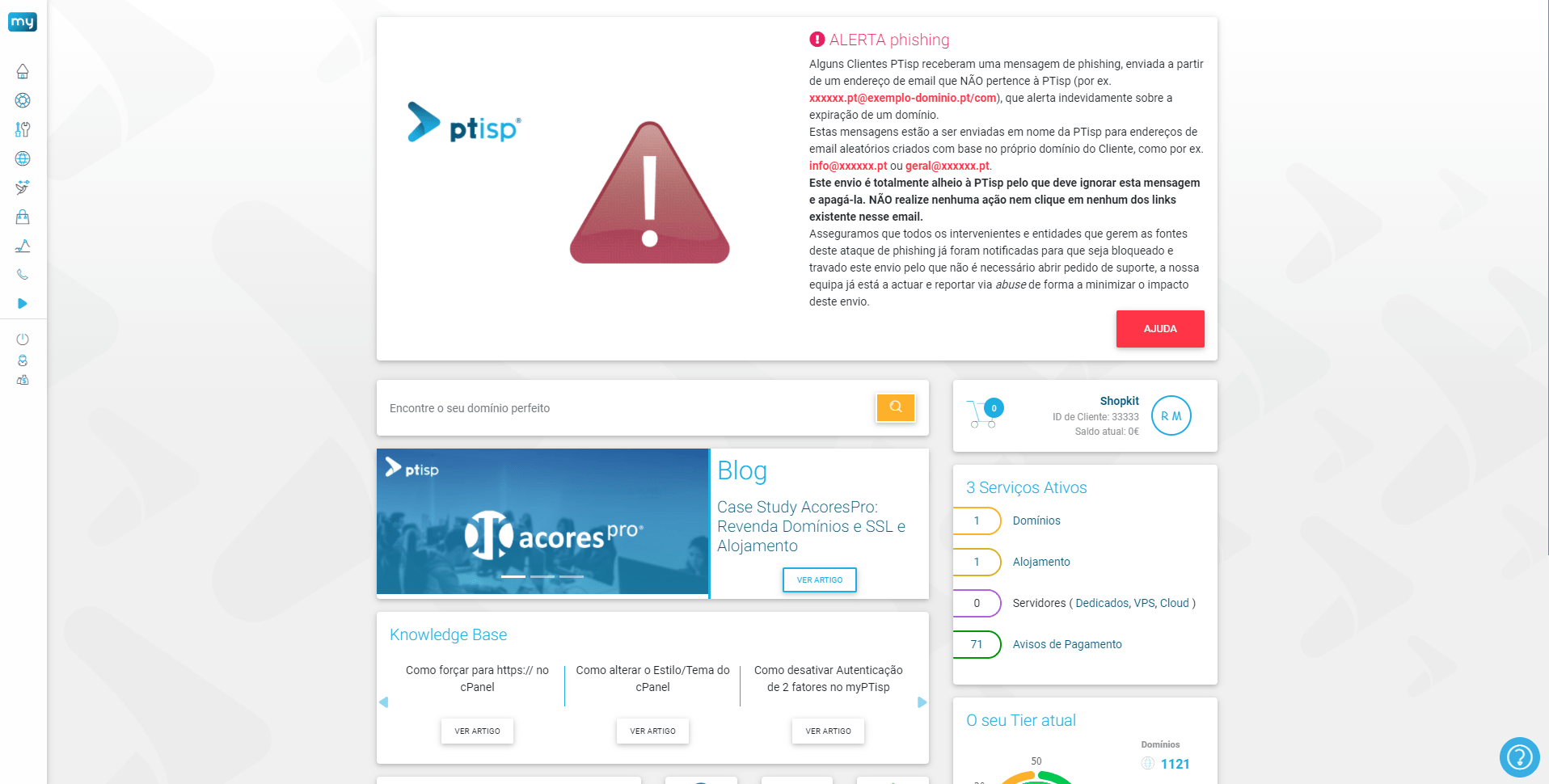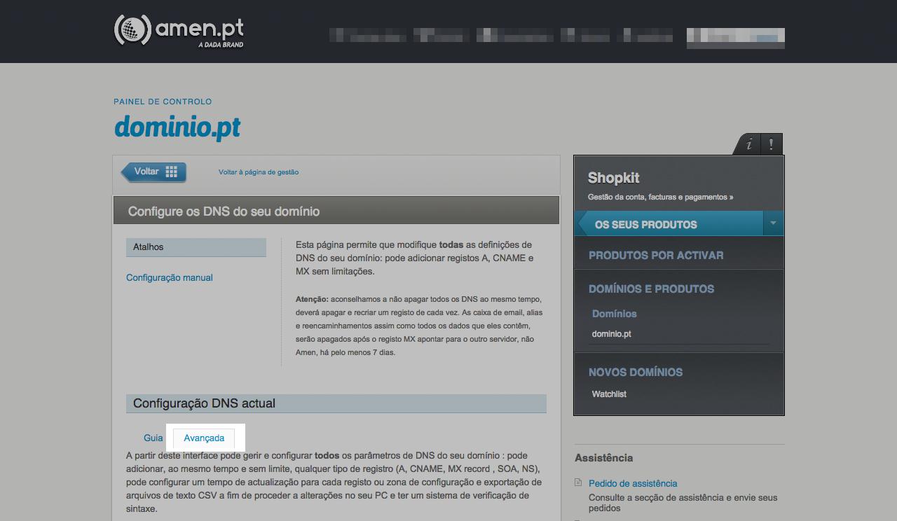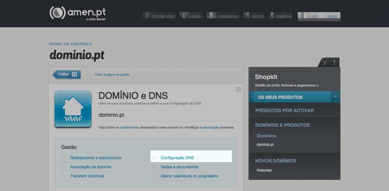 Para configurares um domínio na PTisp, segue os seguintes passos:
