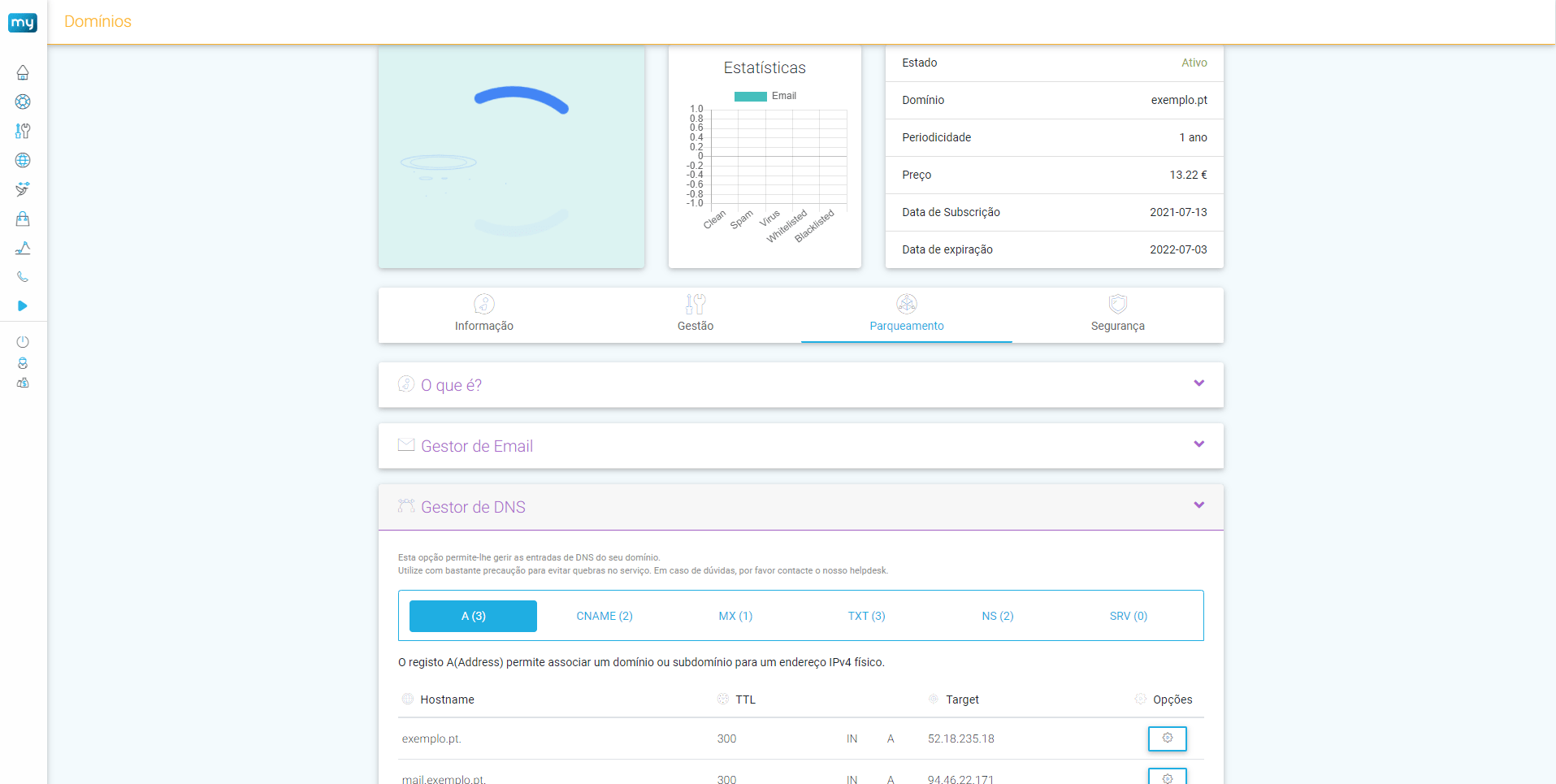Se necessitares de registar um domínio próprio, podes fazê-lo através da área de gestão da tua loja. Toda a configuração é feita de forma automática. Para registares o teu domínio acede ao menu Configurações / Domínios.