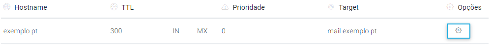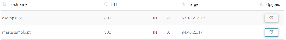 mail - No campo Target coloca o IP da tua zona que por norma é o mesmo usado nos restantes registos A