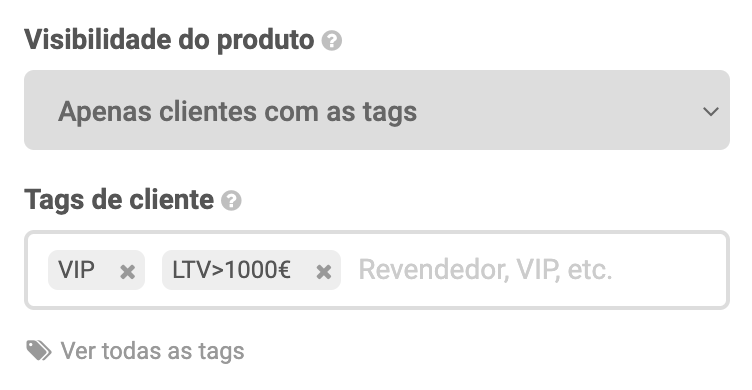 - Apenas clientes com as tags: o produto fica visível apenas para clientes com login efetuado e com a(s) tag(s) selecionada(s).