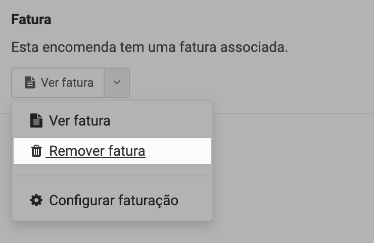 Podes remover faturas associadas a encomendas a qualquer altura. Os passos necessários são os seguintes: