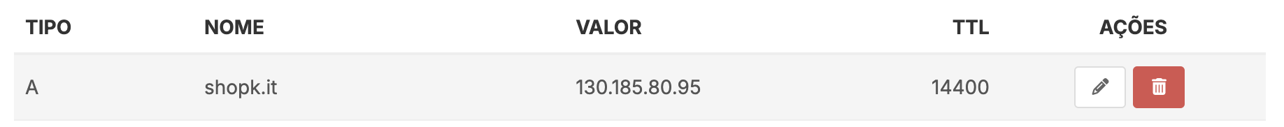 - TTL (opcional): Indica durante quanto tempo pretendes que o registo DNS seja guardado nos servidores na internet antes de ser atualizado. Deves inserir um valor em segundos.