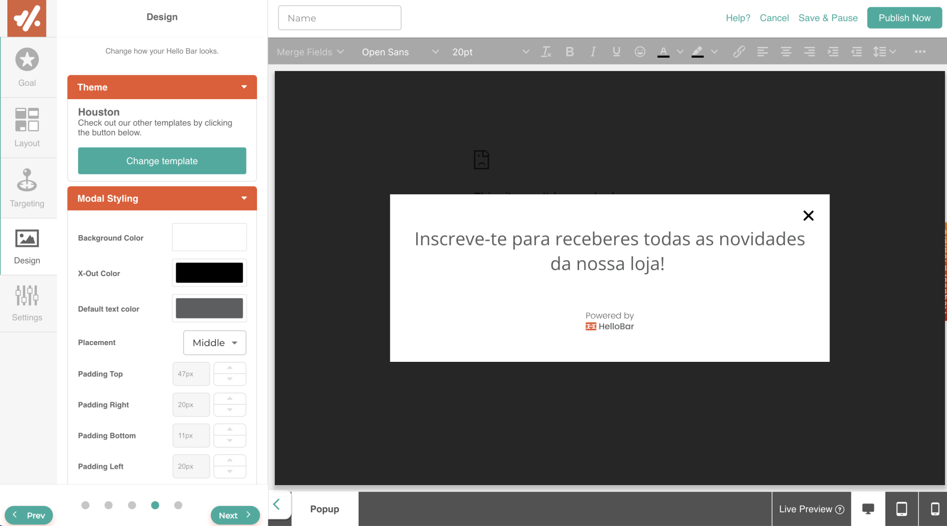 Criar pop-ups no Hello Bar