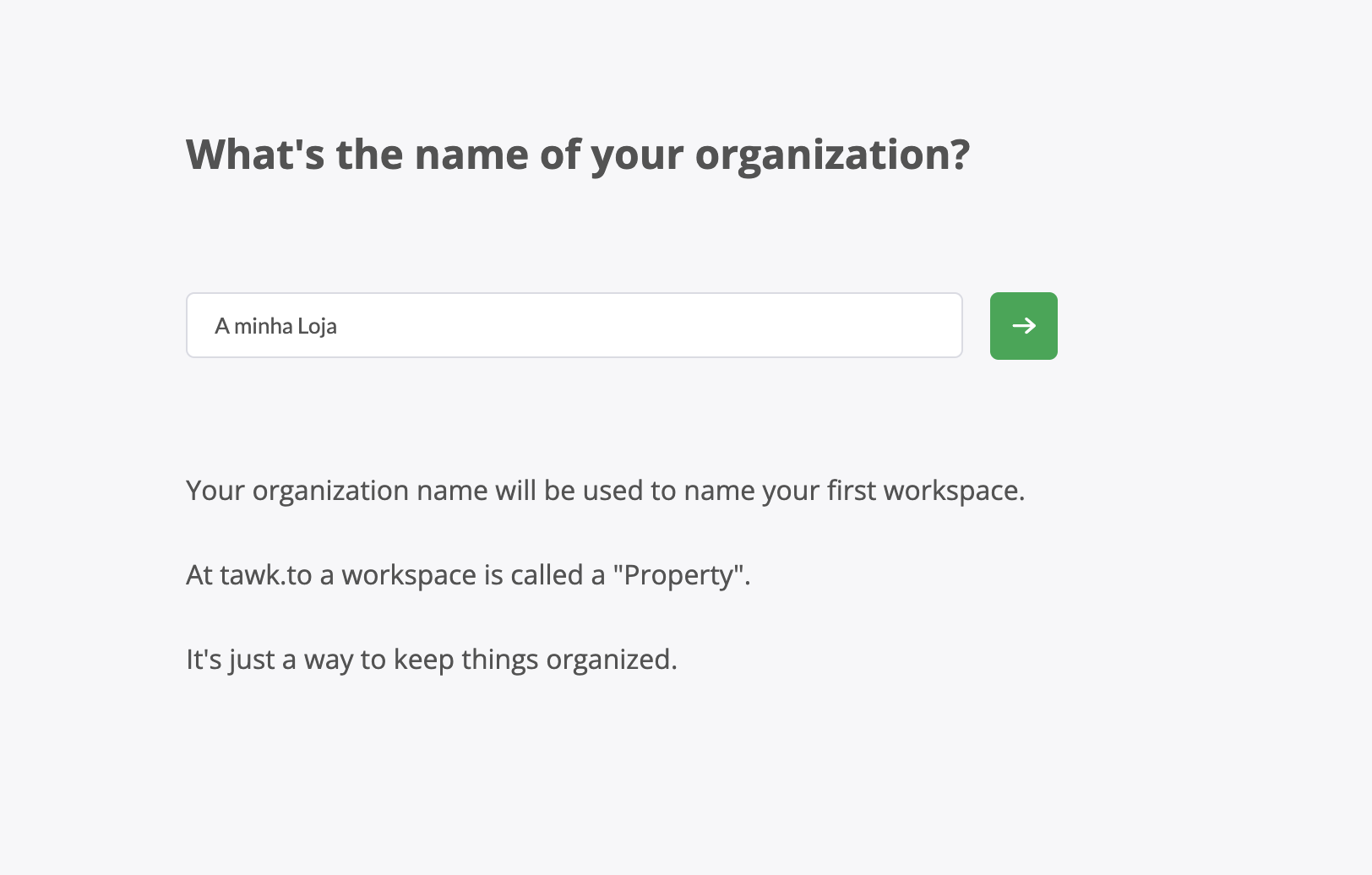 Assim que definires o nome para a tua organização, clica novamente na seta (➡️) ou no botão Next, visível no fundo da página.