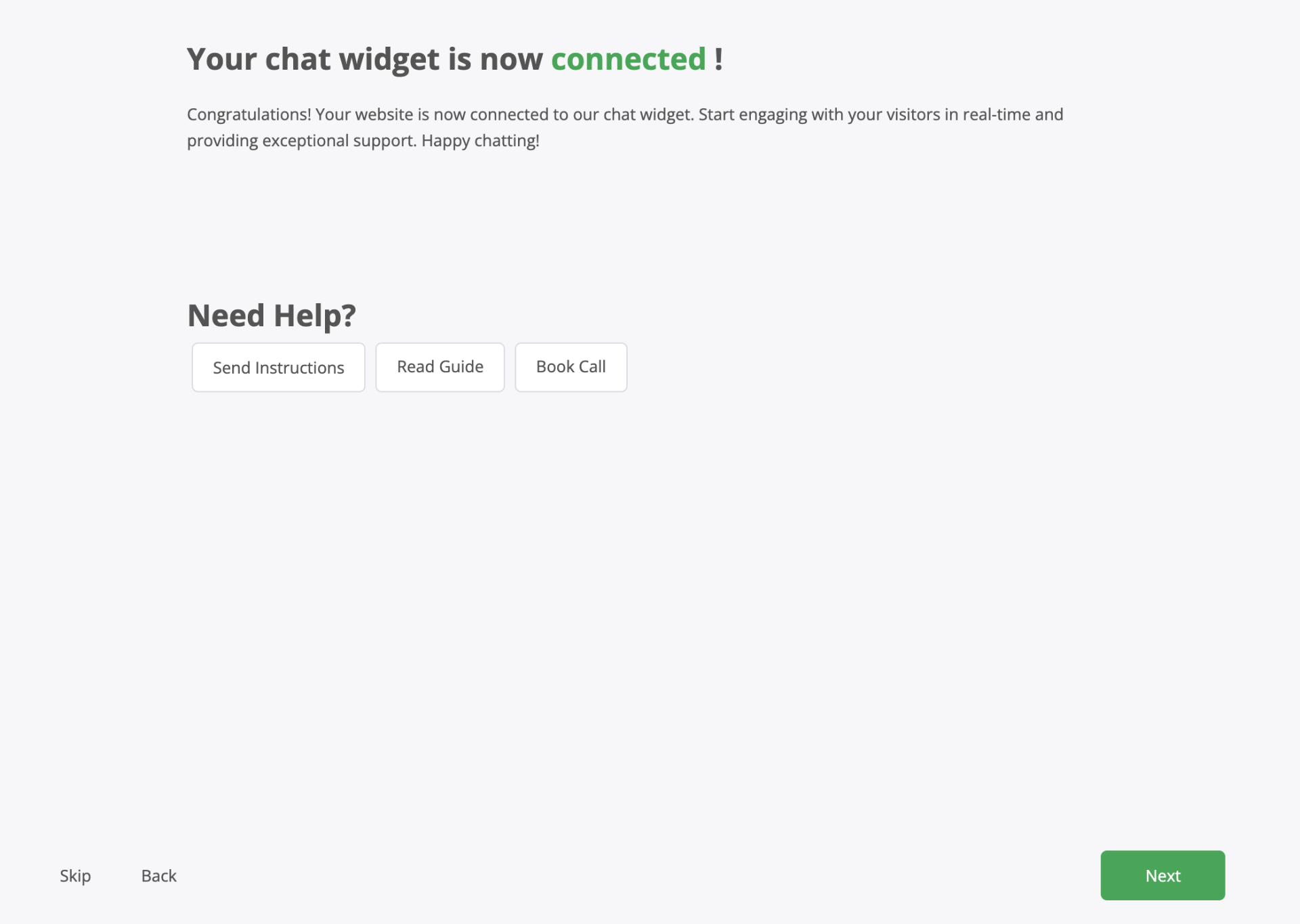 O teu chat online estará configurado corretamente, mas podem existir outras configurações disponíveis referentes à tua conta na plataforma do Tawk que podes configurar ou optar por fazê-lo mais tarde.