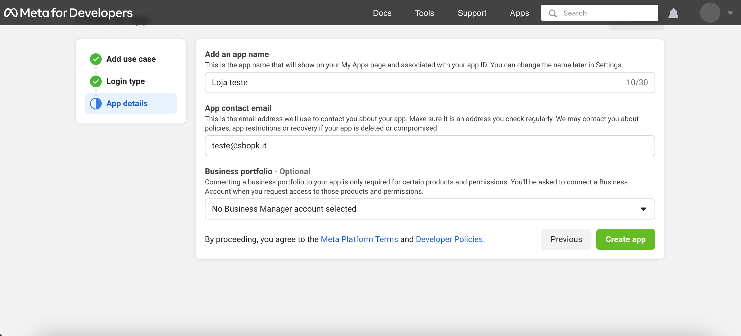Antes de começares a configuração da App Facebook Login, pode ser necessário criar uma conta de developer na Meta.