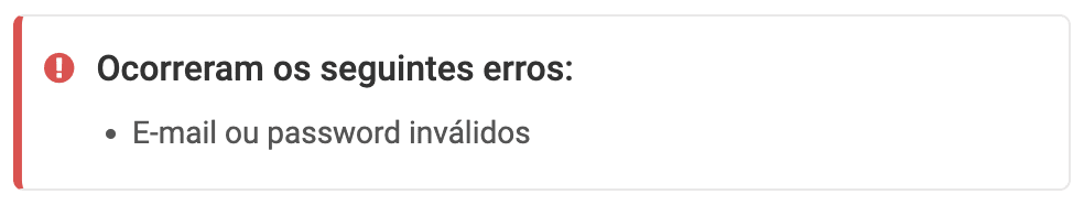 Se estás a efetuar o primeiro login com o teu acesso de utilizador e verificas a mensagem de erro "E-mail ou password inválidos", confirma se já ativaste a tua conta através do botão Ativar conta, disponível no e-mail que é enviado após a criação do utilizador.
