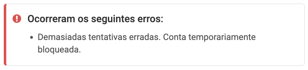 Quando inseres os dados de autenticação incorretos demasiadas vezes, a conta é bloqueada temporariamente durante 10 minutos, por razões de segurança. Aguarda alguns minutos antes de tentares efetuar o login novamente. Verifica se os teus dados de autenticação estão corretos antes de efetuares uma nova tentativa de login.