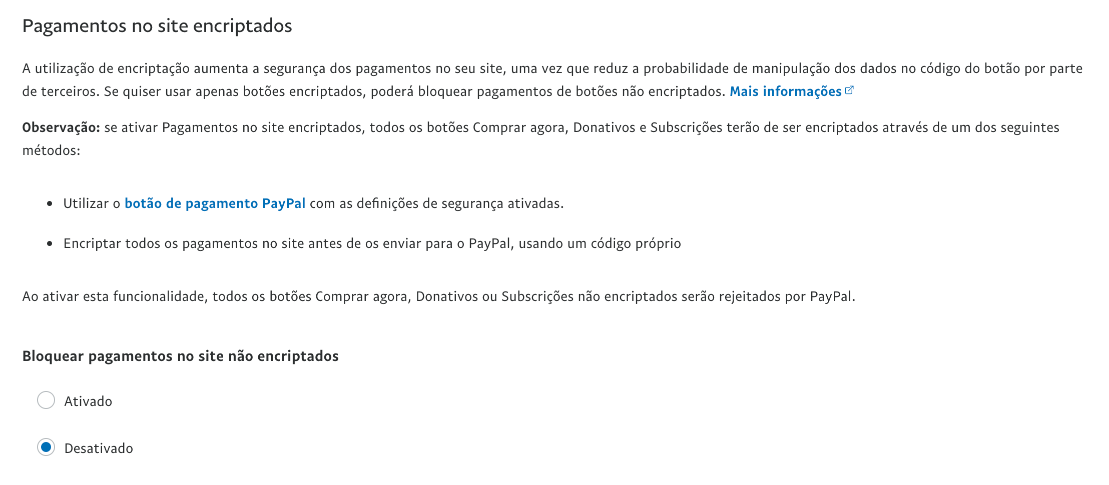 - Na tua conta Paypal, acede ao menu Definições de conta / Pagamentos no site / Preferências do site e certifica que a opção Bloquear pagamentos no site não encriptado está desligada.