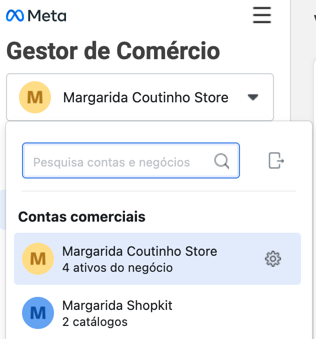 - Certifica-te que tens selecionada a conta do Meta Business Suite correta (ver exemplo);
