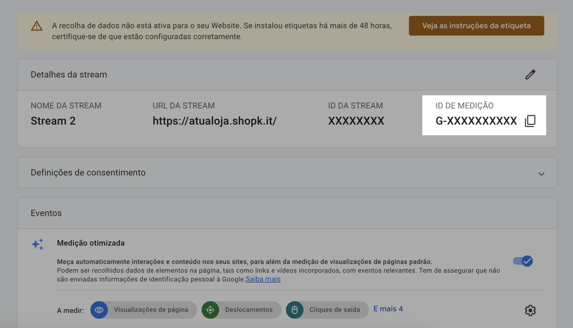 - Precisas de configurar uma propriedade na tua conta do Google Analytics.