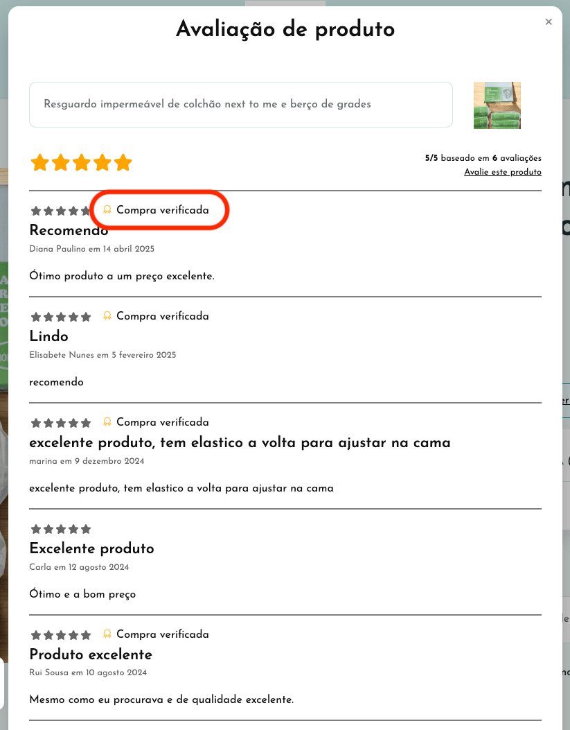 A indicação Compra verificada serve para identificar as compras que foram feitas por clientes que adquiriram o produto na loja.
