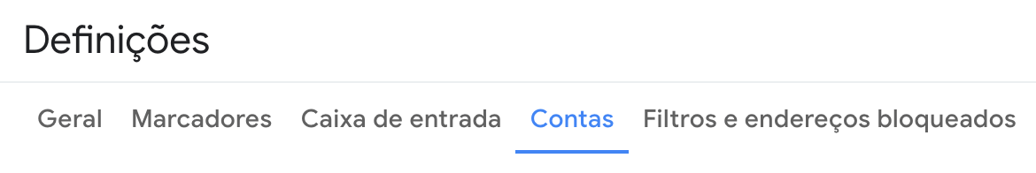 No Gmail, acede a Definições / Ver todas as definições e, de seguida, ao separador Contas.