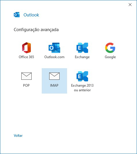 No passo Configuração avançada, seleciona IMAP.