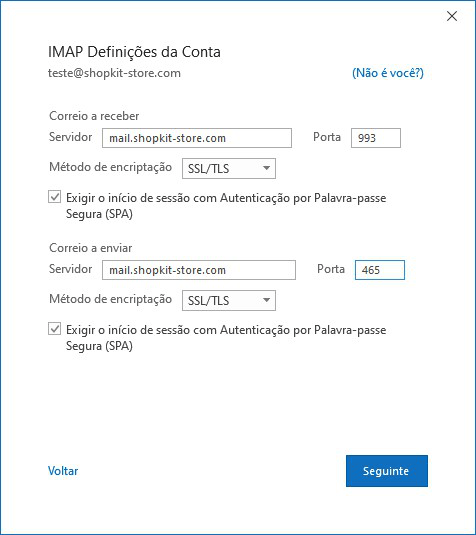 Nome de utilizador IMAP: {nome do utilizador da conta de e-mail}