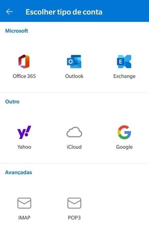 Configuração de conta de e-mail Outlook versão mobile