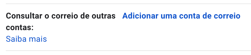 Para adicionares a tua conta de e-mail, terás de realizar duas configurações. Primeiro, escolhe a opção Adicionar uma conta de correio, na secção Consultar o correio de outras contas: