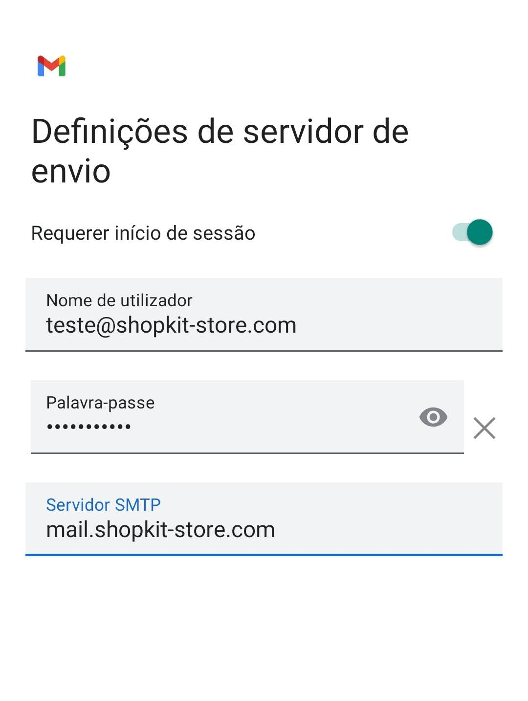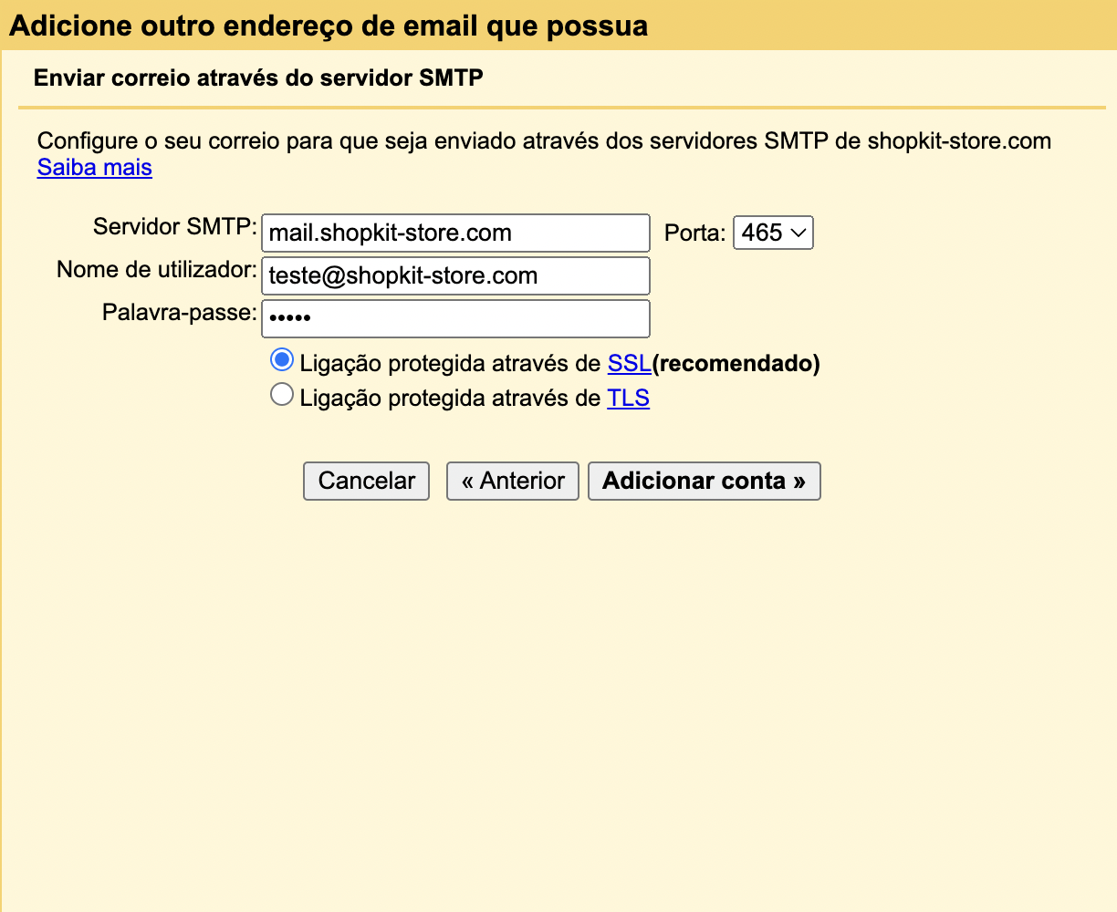 Palavra-passe SMTP: {password da conta de e-mail}