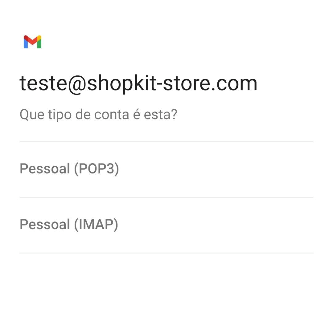 Configuração conta de e-mail Gmail versão mobile