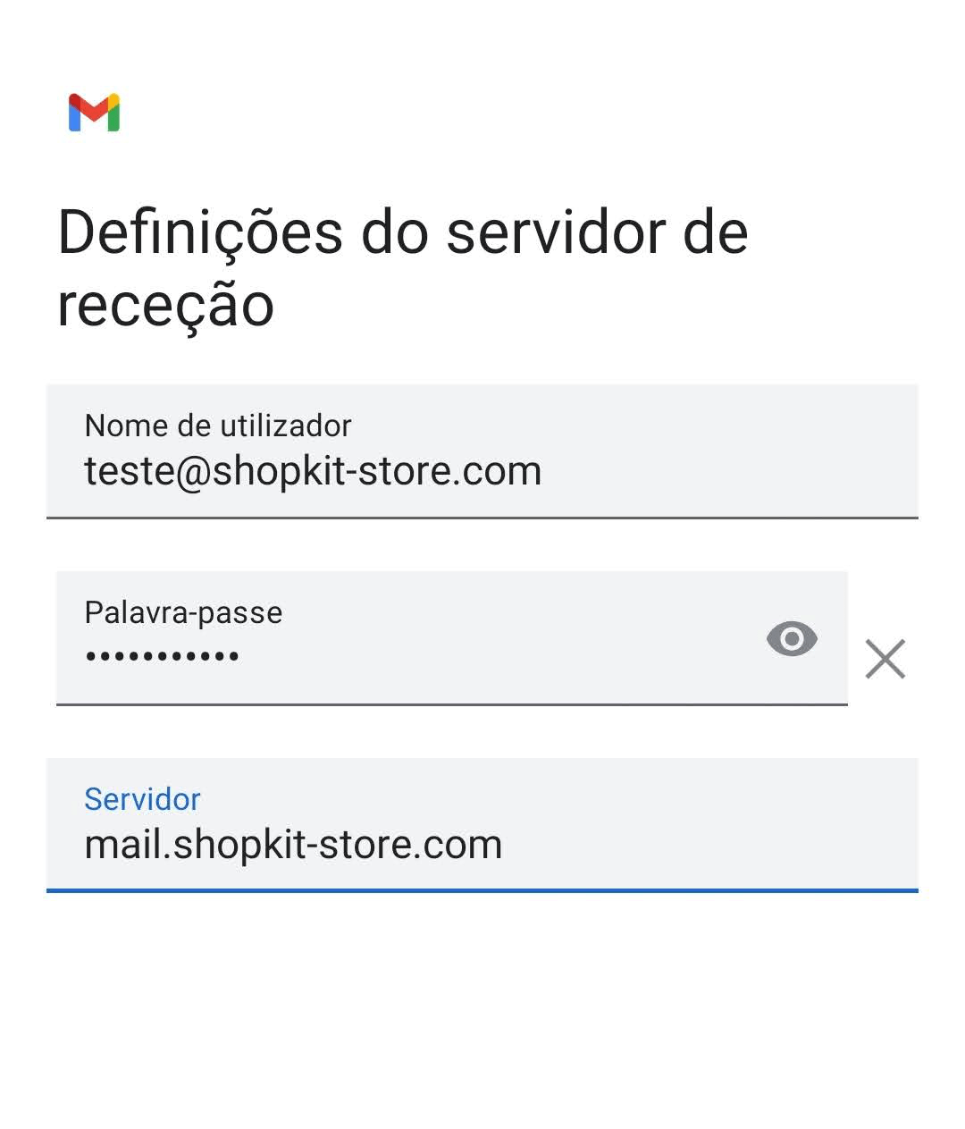 Palavra-passe IMAP: {password da conta de e-mail}