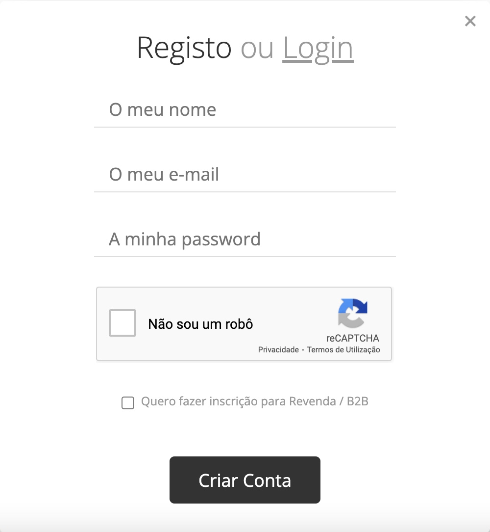 Os clientes podem registar-se como revendedores ao criar uma conta na loja. Basta que, durante o registo de cliente, a opção Quero fazer inscrição para Revenda / B2B seja selecionada.