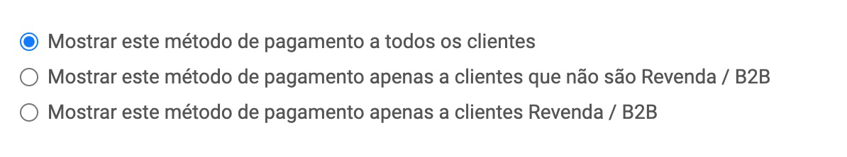 - Definir a visibilidade dos métodos de pagamento consoante o tipo de cliente;