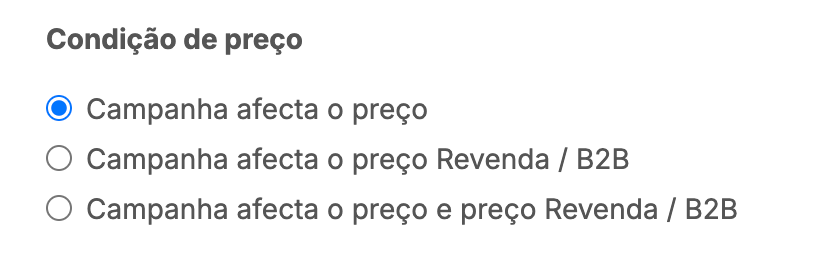 Ao ativares esta opção, a campanha de desconto é aplicada ao preço de produtos para clientes finais e para clientes de revenda.