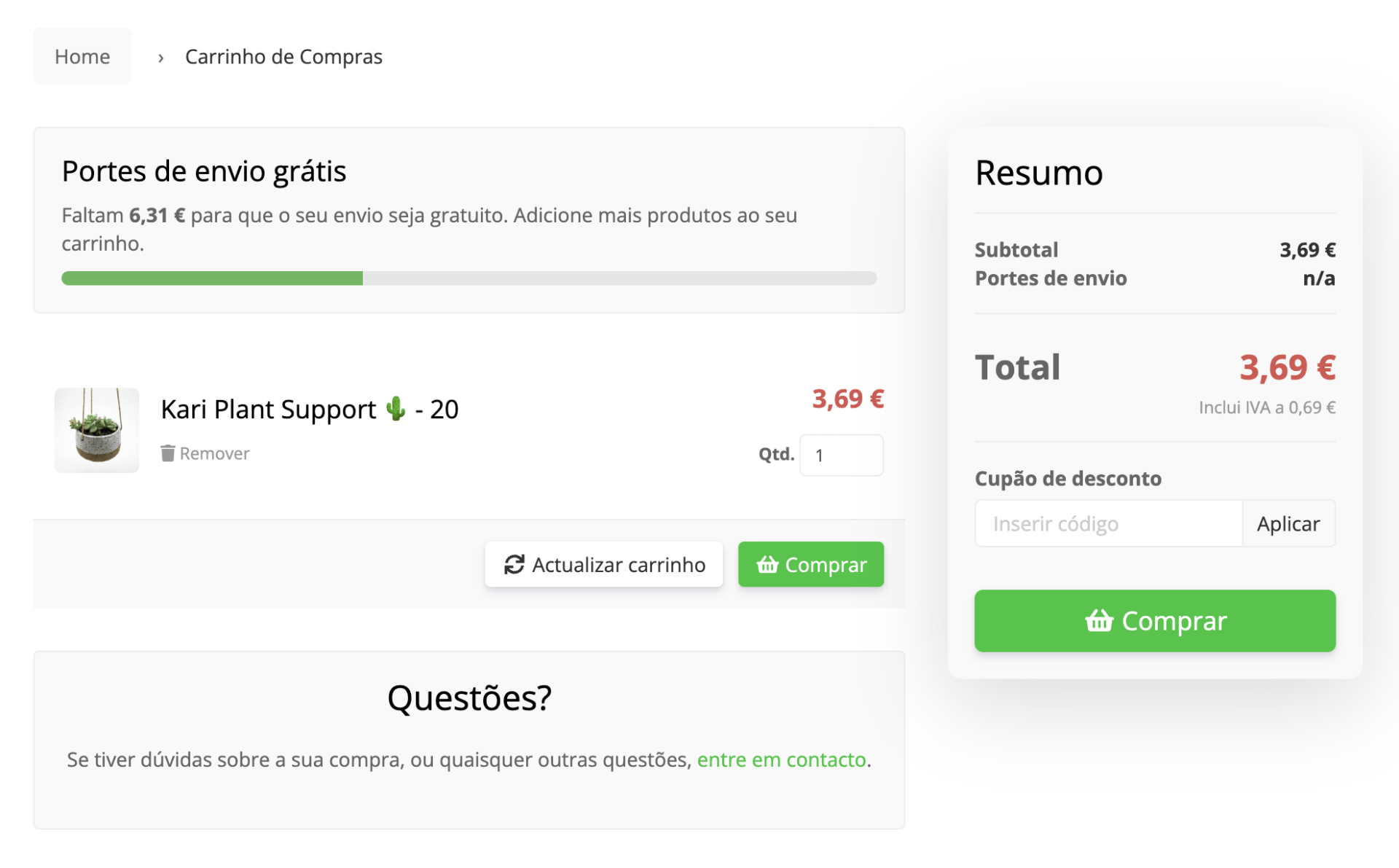 A app Alerta de portes grátis permite-te avisar os clientes do valor que falta para usufruir da oferta de portes. Como estratégia de up selling, pode contribuir para aumentar o valor médio dos carrinhos.