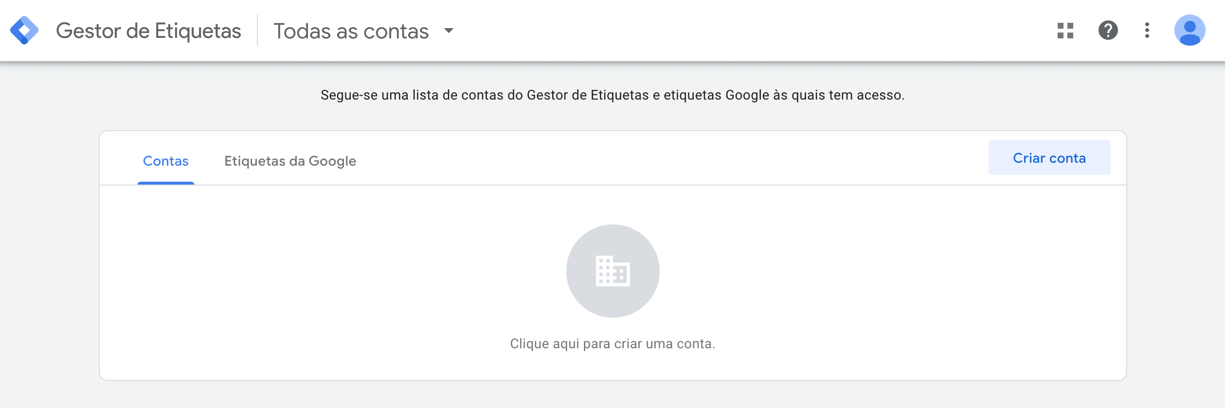 Acede ao Gestor de Etiquetas Google e segue os seguintes passos para criares a tua conta: