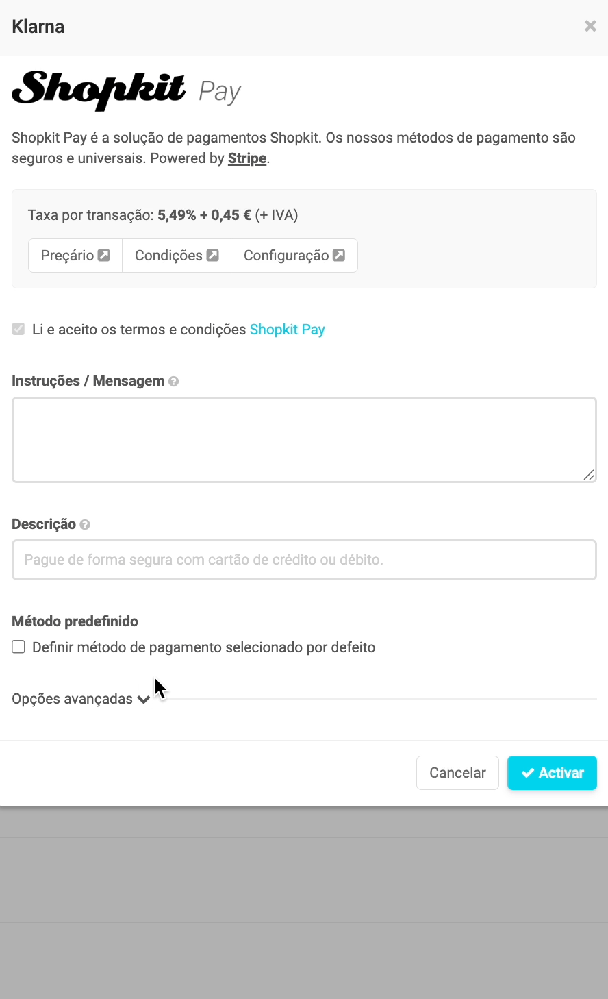 - Ler e aceitar os Termos e Condições da Shopkit Pay